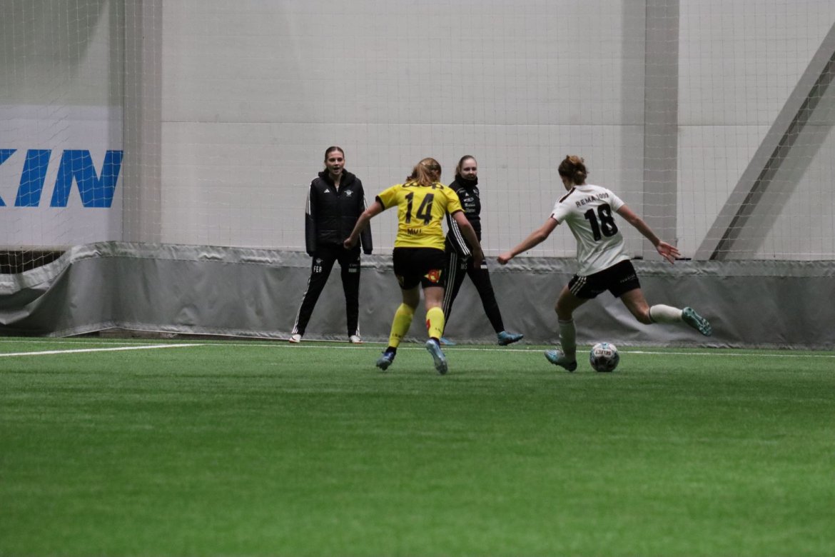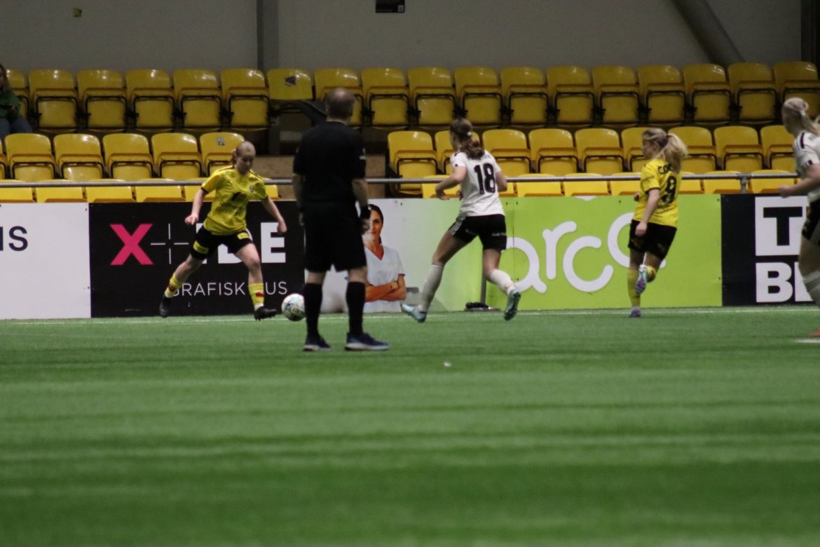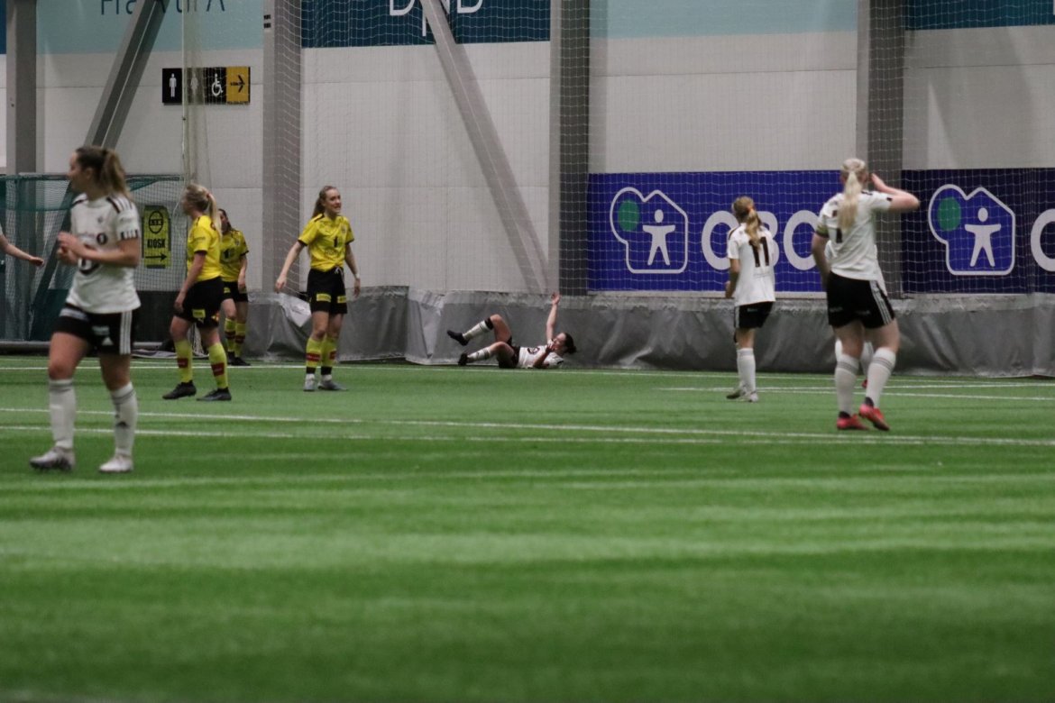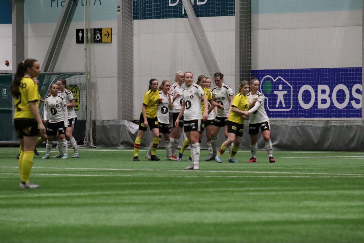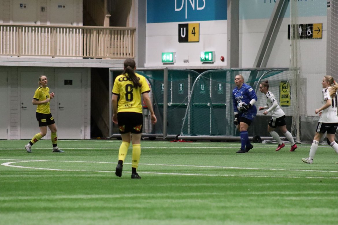 Med kampstart kl. 19.30 er det duket for å brette opp ermene, gjøre et solid stykke arbeid og virkelig blø for drakta. Kampen starter nok en gang med et godt forsvar, og allerede etter 9 minutter lykkes vi i den defensive jobben der vi sideforskyver godt og flytter beina kjapt. Linnea Rustad ser sitt snitt til å snappe ballen fra Lillestrøms forsvarsspiller som fører framover, før hun setter fart nedover høyrekanten. Med høyt tempo gjør hun ingen feil og setter ballen hardt og trygt i mål! Vi åpner med en pangstart, noe som skaper selvtillit og energi i laget. Lillestrøm virker noe rystet, og kampen bølger frem og tilbake hvor begge lag angriper og har målfarlige sjanser. Vi går til pause med 0-1 og føler oss noe tryggere enn sist kamp.