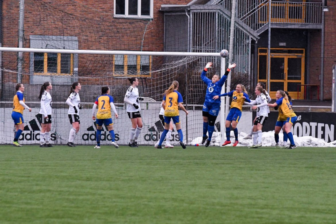 Vi startet inngangen til kampen med å legge en plan der vi var klar over hva vi kom til å møte ettersom vi har øvd hele uka inn mot denne kampen. Fokusområdene var råskap i press-spillet, i gjenvinningen av ball, og spille oss kjapt ut av situasjonene etter at ballen er gjenvunnet. Ved første fløyteblås virket det som om en bryter slo seg av, for det laget som startet kampen var ikke til å kjenne igjen. Det endte opp med å bli en total kollektiv svikt i første omgang med flere enkeltprestasjoner som ikke var i nærheten til forventningene. Heldigvis for vår del skapes det nesten ikke målsjanser fra noen av lagene. For den nøytrale tilskuer ender det opp med å bli en kjedelig omgang preget av mange pasningsfeil, lite engasjement og en del rot. Omgangen fikk for øvrig ett mål etter 17 minutter som kommer fra at vi selv roter bort ballen på midten, og Grorud sin spiss får føre alene mot bakre firer. Uten press på ballfører ender det opp med et skudd fra omkring 30 meter som går over vår keeper Christina og i mål. Gjestene fra Grorud ledet 0-1 til pause.