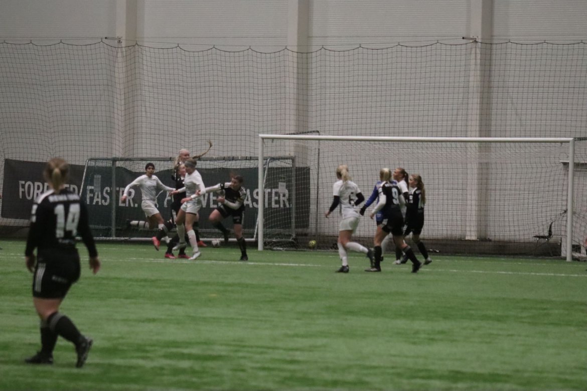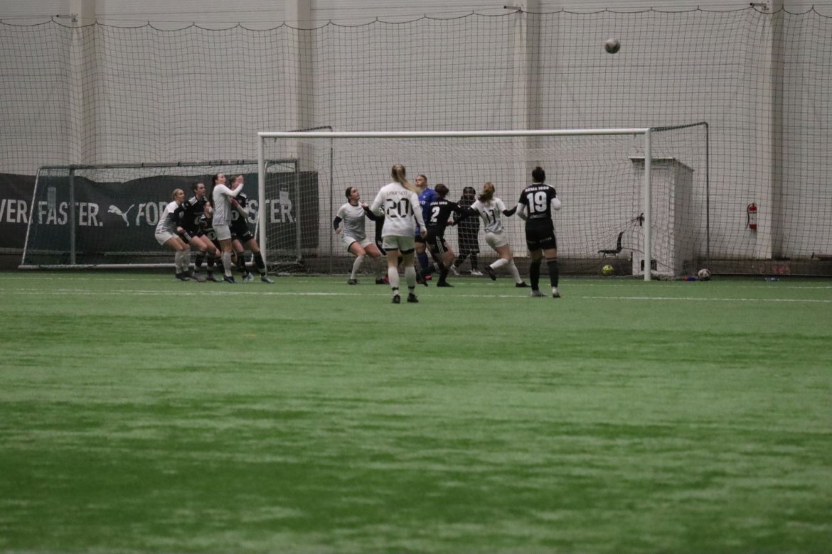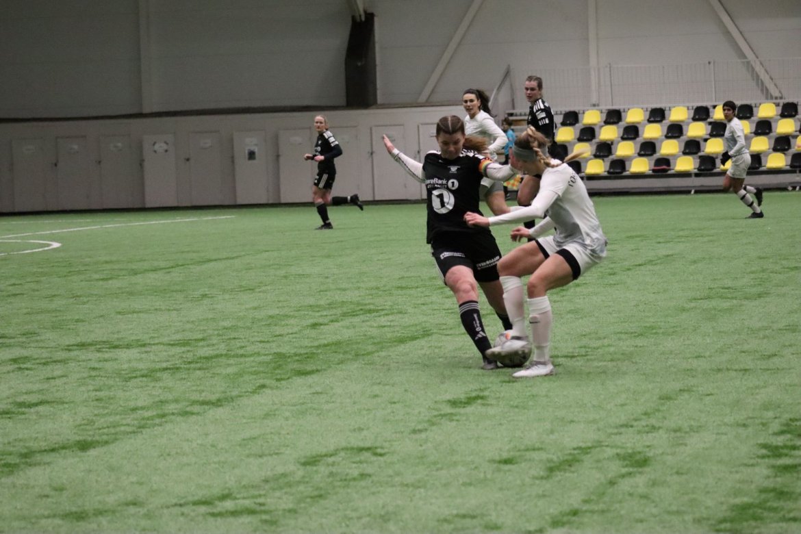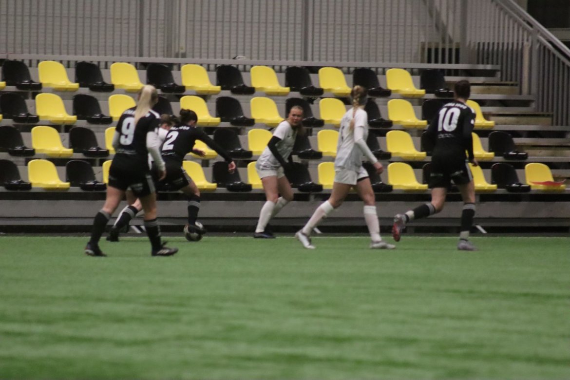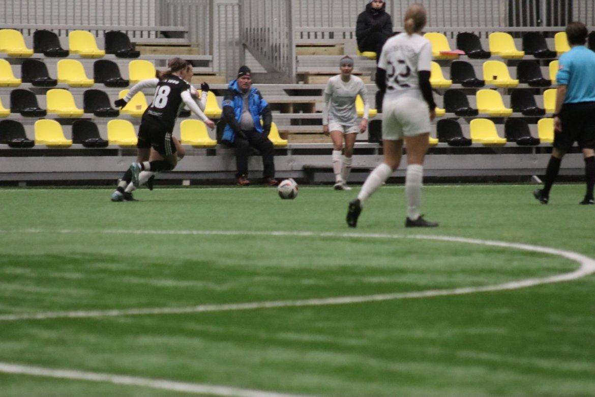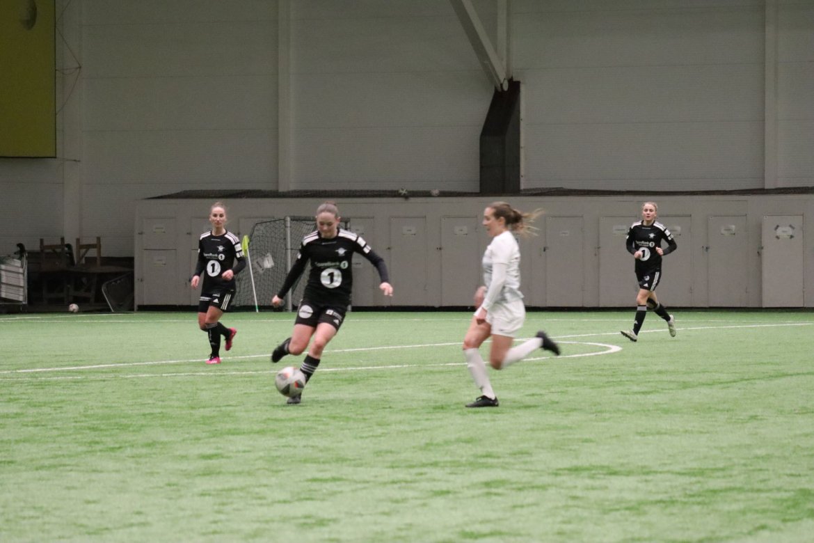 Med alle forutsetninger på plass starter det litt typisk for et lag blandet av ungdommelig pågangsmot og rutinerte gode fotballspillere, nemlig rufsete og hawaiifotball. De første 10 minuttene preges av alle inntrykk vi må ta innover oss, og at det vi har ventet så lenge på endelig er i gang. Det kommer et par skudd imot som havner i stolpen, og målet er heldigvis en god venn denne gangen. Etter hvert kommer vi oss mer inn i kampen og kan takke oss selv for at vi har hatt fokus på forsvarsspill, for det redder oss. Det offensive tar mer tid å få på plass, men vi plukker opp et rom som FC Oslo etterlater seg og klarer på et tidspunkt å utnytte dette. Nora Eriksson vender nydelig opp lavt i banen, og Linnea Rustad er på hugget og starter tidlig på en lang tversover som går over backen til FC Oslo. For første gang i kampen er vi igjennom, Linnea lader kanonen og sender oss opp i 1-0 ledelse med et godt plassert skudd som går over keeper og inn i motsatt hjørne. Vi har tatt ledelsen mot spillets gang, noe som gir laget en enorm selvtillitsboost! Vi er på høyde med FC Oslo ut resten av 1. omgang, og styrer mer av spillet.