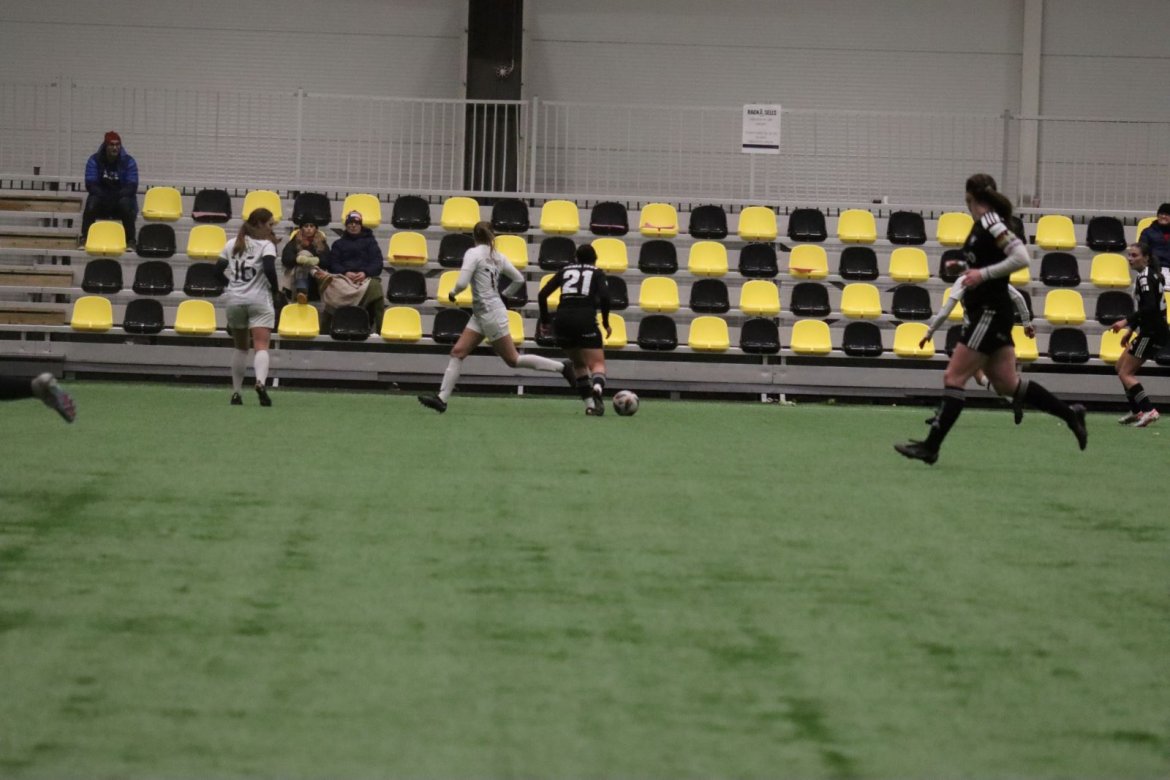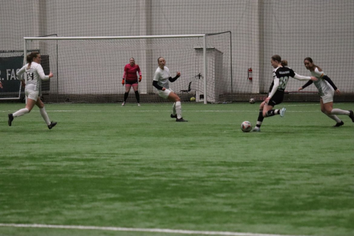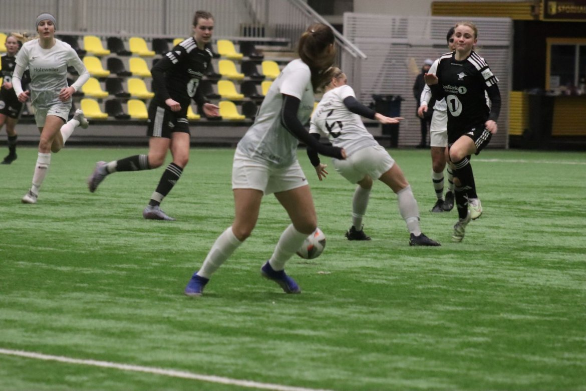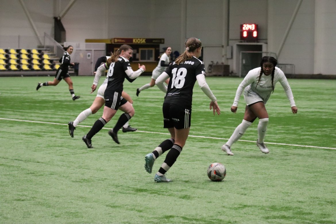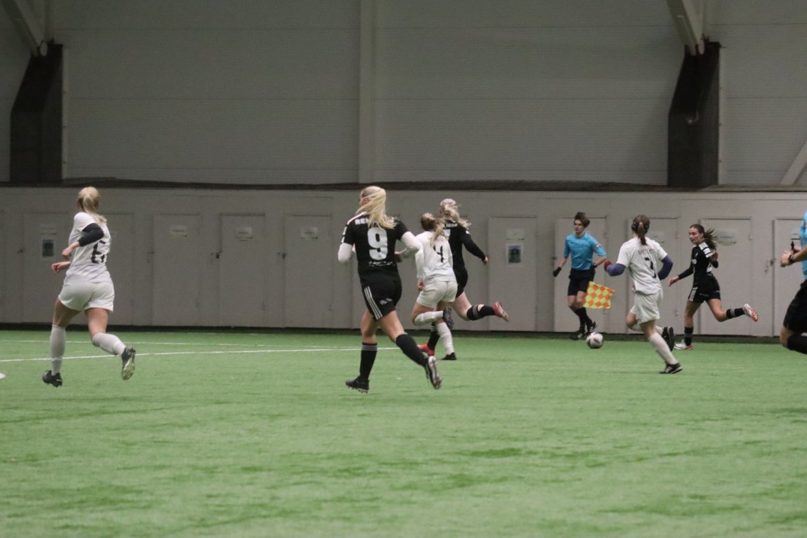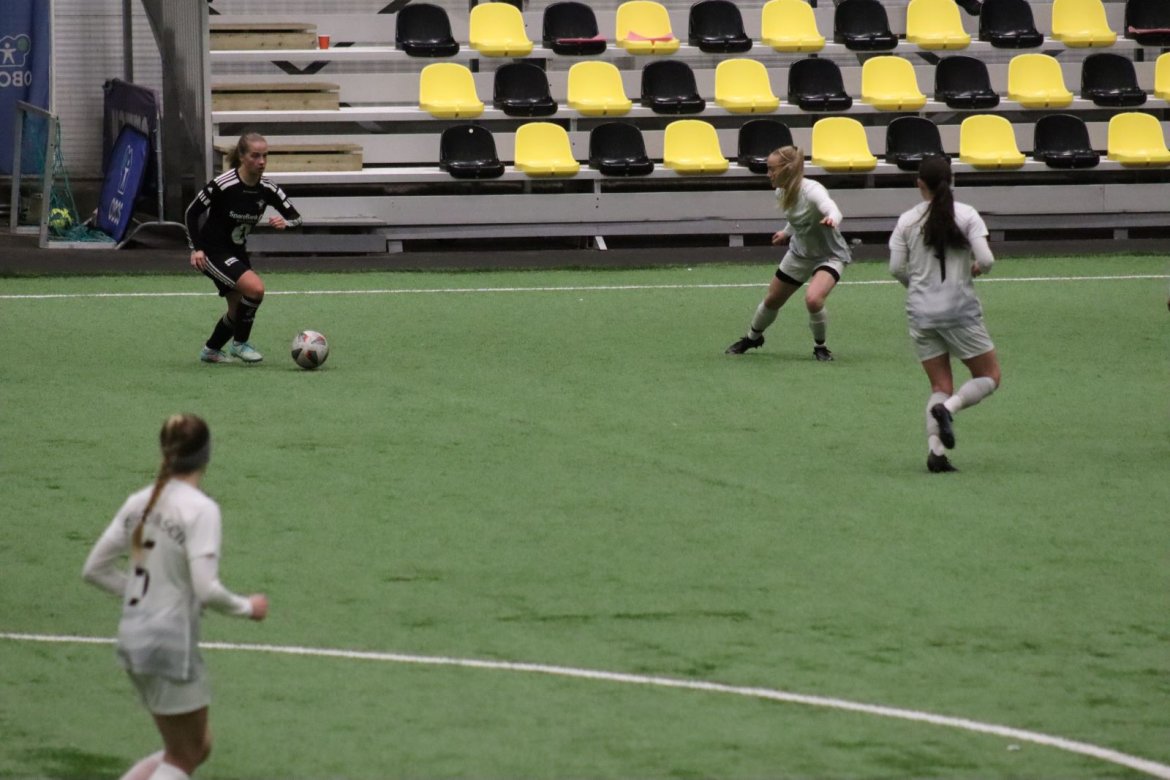 Med alle forutsetninger på plass starter det litt typisk for et lag blandet av ungdommelig pågangsmot og rutinerte gode fotballspillere, nemlig rufsete og hawaiifotball. De første 10 minuttene preges av alle inntrykk vi må ta innover oss, og at det vi har ventet så lenge på endelig er i gang. Det kommer et par skudd imot som havner i stolpen, og målet er heldigvis en god venn denne gangen. Etter hvert kommer vi oss mer inn i kampen og kan takke oss selv for at vi har hatt fokus på forsvarsspill, for det redder oss. Det offensive tar mer tid å få på plass, men vi plukker opp et rom som FC Oslo etterlater seg og klarer på et tidspunkt å utnytte dette. Nora Eriksson vender nydelig opp lavt i banen, og Linnea Rustad er på hugget og starter tidlig på en lang tversover som går over backen til FC Oslo. For første gang i kampen er vi igjennom, Linnea lader kanonen og sender oss opp i 1-0 ledelse med et godt plassert skudd som går over keeper og inn i motsatt hjørne. Vi har tatt ledelsen mot spillets gang, noe som gir laget en enorm selvtillitsboost! Vi er på høyde med FC Oslo ut resten av 1. omgang, og styrer mer av spillet.