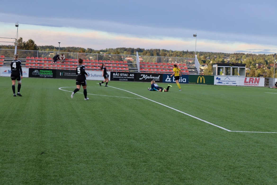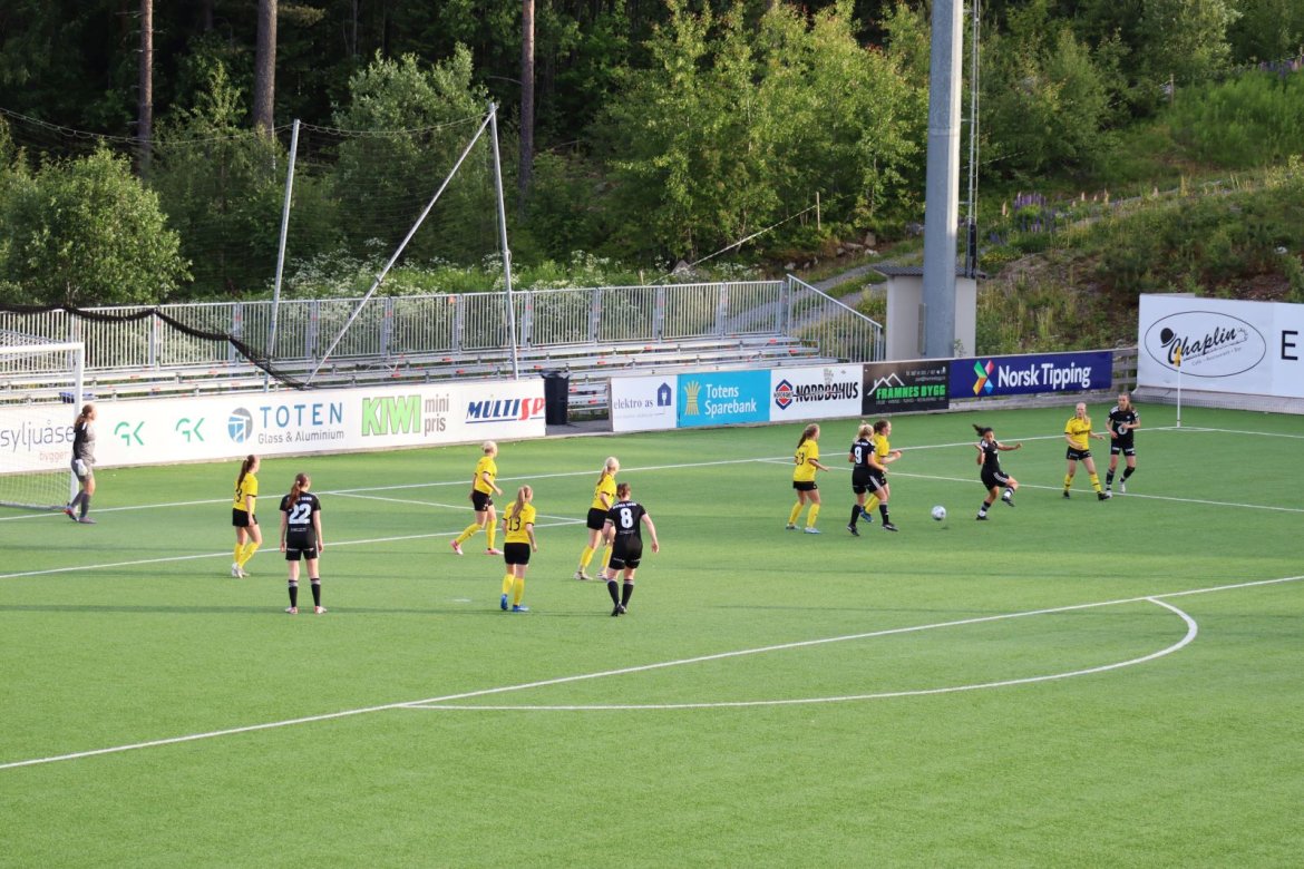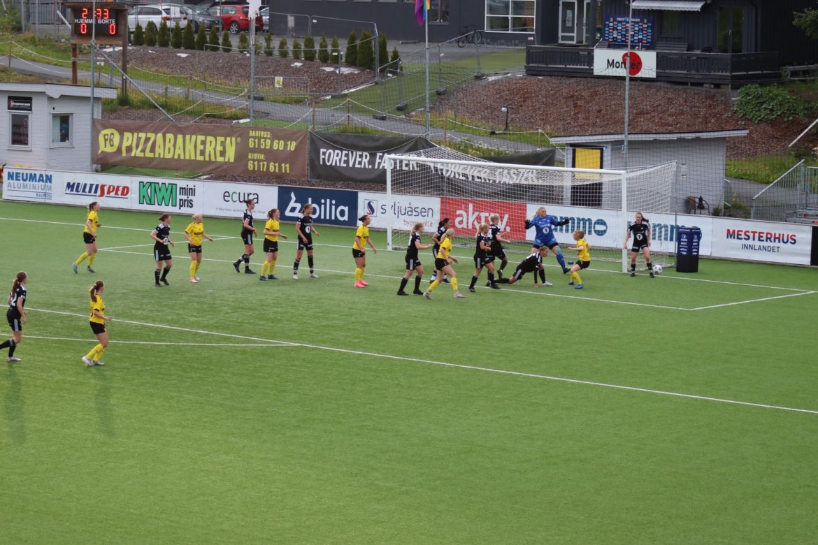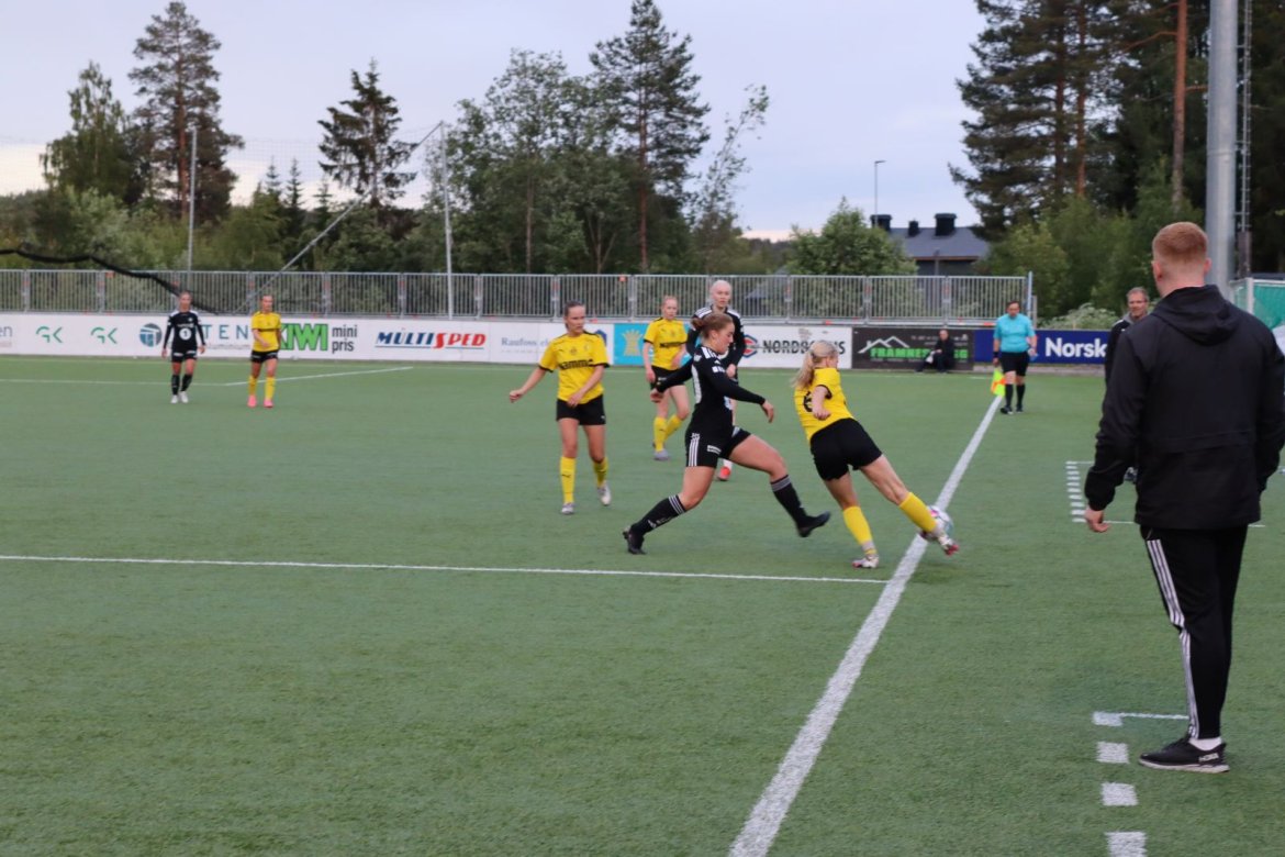Når vi starter 2. omgang drømmer vi fortsatt om å diktere Raufoss defensivt og å få noen kontringer/gjenvinninger/dødballer som vi kan skape mål av, men der måtte vi tro om igjen. I løpet av de første fem minuttene har Raufoss skrudd til et lite hakk, og vi slipper inn to mål på slurv der vi ser mangel på konsentrasjon. 1-0 kommer etter 48 minutter og 2-0 etter 50 minutter. En ergrelse og irritasjon preger oss når vi innser hvor slurvete vi var, men etter 60 spilte minutter rister vi av oss skuffelsen. Vi gjør noen bytter i løpet av omgangen som er med på å heve kvaliteten. Spesielt Tonje Kopperud Olsen skal få fjær i hatten for måten hun kommer inn på som vår andre spiss, der hun skaper frykt og ubalanse i Raufosslaget. Olsen er kun centimetere unna å sette 3-1 rett etter vi var uheldige og slapp inn 3-0 på langskudd etter 83 spilte minutter. Vi gir oss virkelig ikke, og etter 86 minutter er det Camilla Klepaker Larsen som med feil fot curler ballen i en fin bue over keeper og inn i nettveggen etter en corner. Vi øyner et håp, men det ble med håpet denne gangen. 3-1 ble sluttresultatet, og vi måtte se oss slått av serielederen.