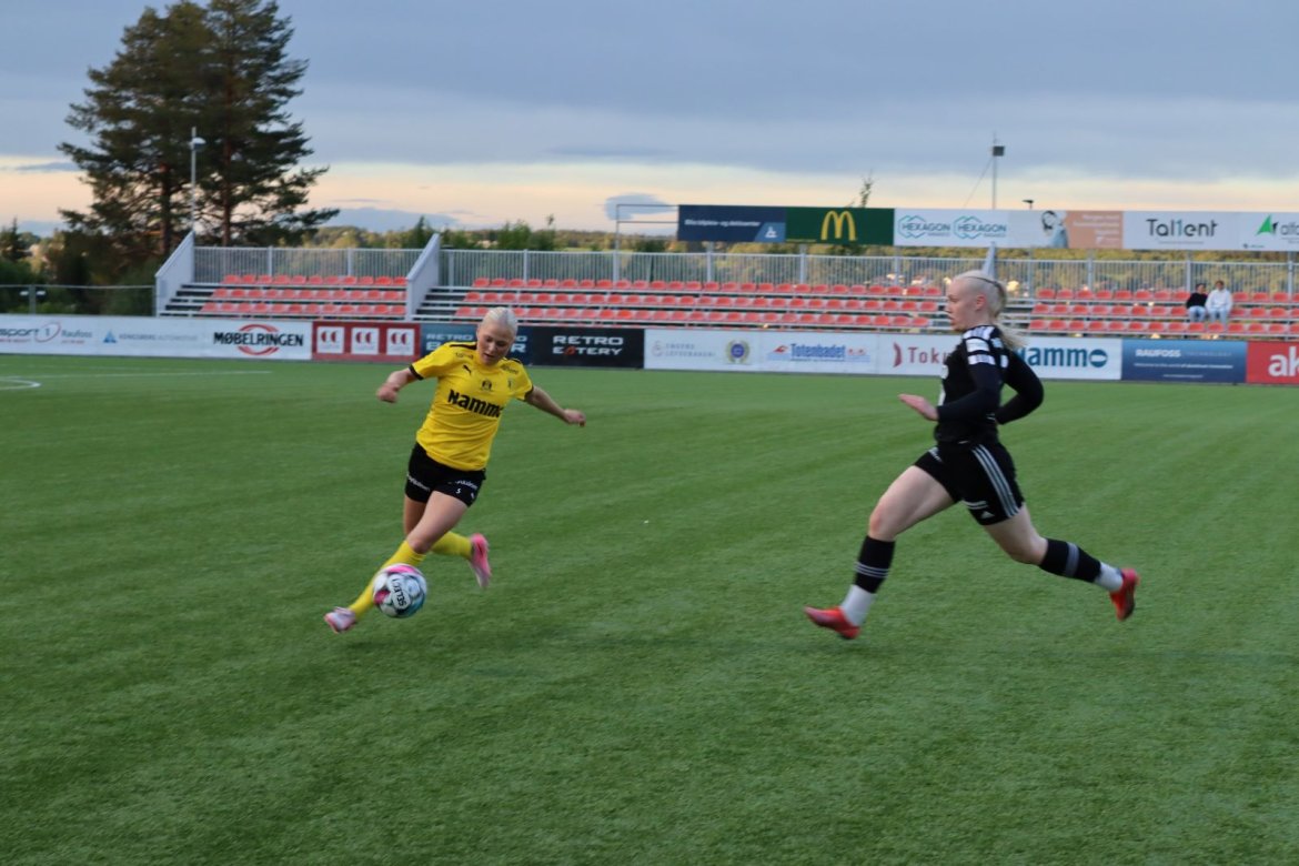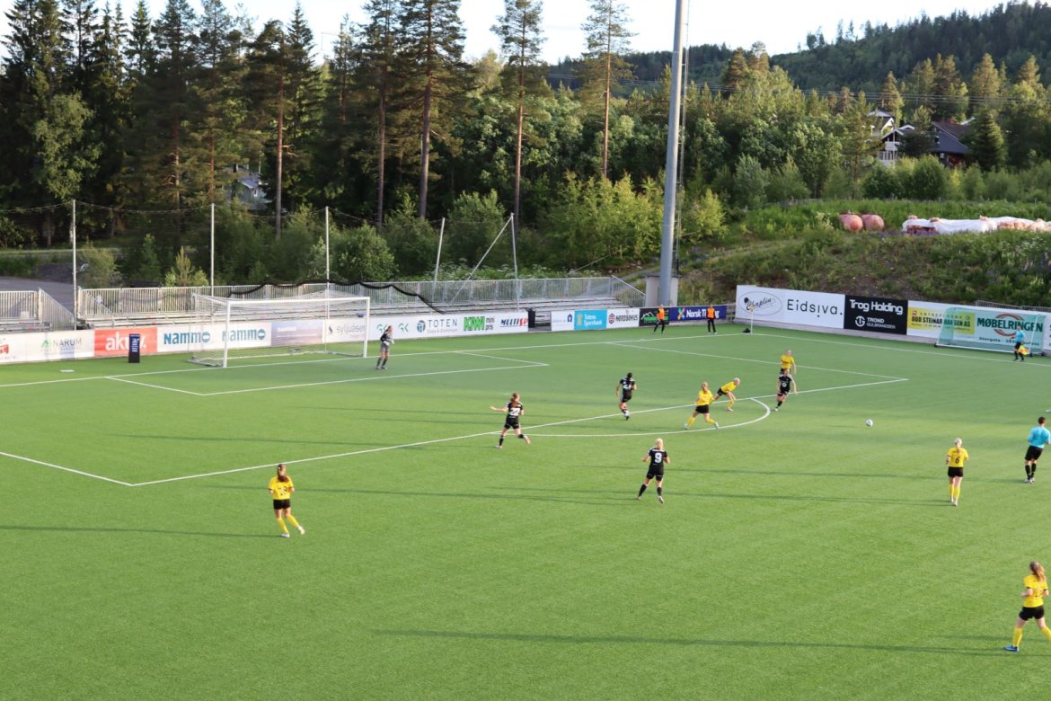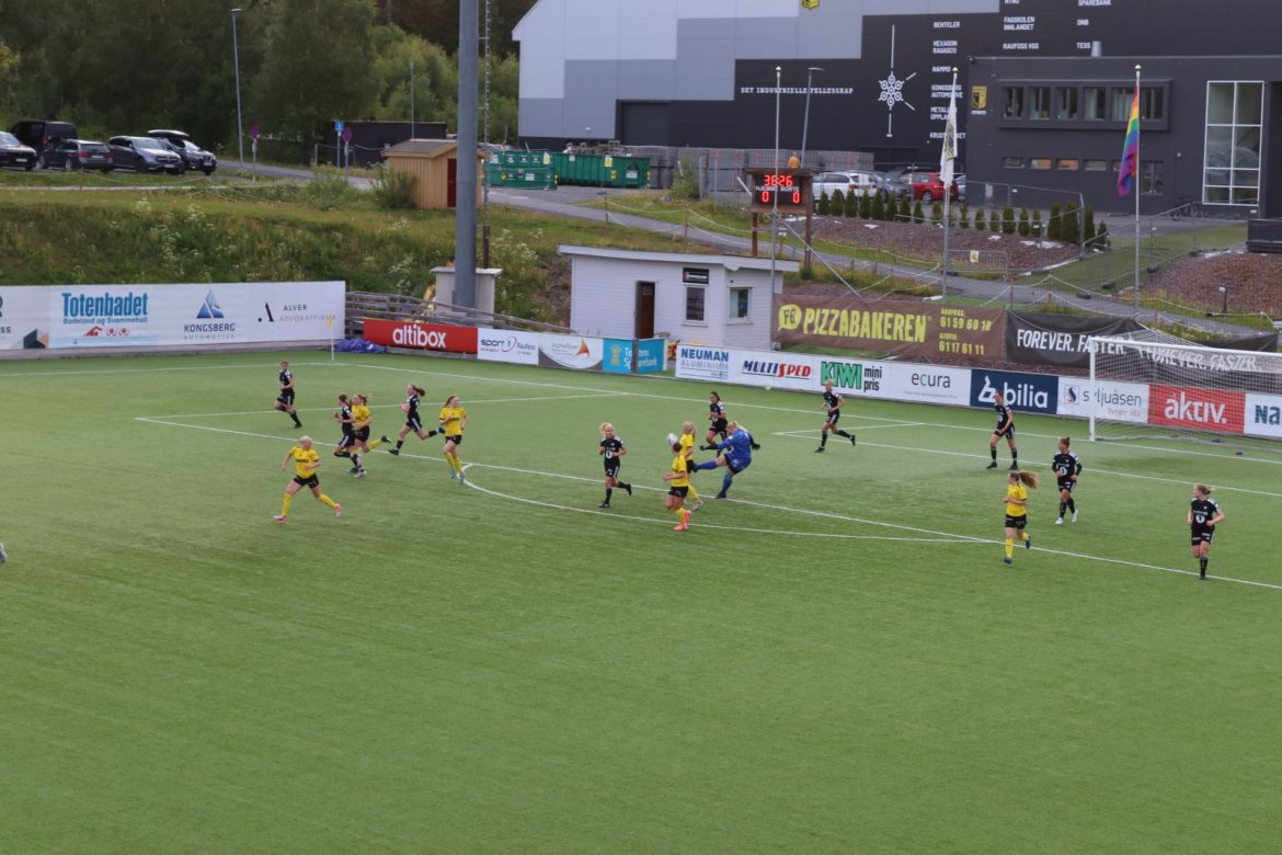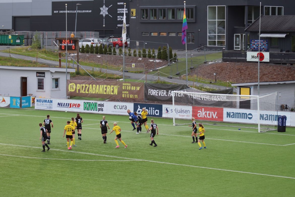 Når vi starter 2. omgang drømmer vi fortsatt om å diktere Raufoss defensivt og å få noen kontringer/gjenvinninger/dødballer som vi kan skape mål av, men der måtte vi tro om igjen. I løpet av de første fem minuttene har Raufoss skrudd til et lite hakk, og vi slipper inn to mål på slurv der vi ser mangel på konsentrasjon. 1-0 kommer etter 48 minutter og 2-0 etter 50 minutter. En ergrelse og irritasjon preger oss når vi innser hvor slurvete vi var, men etter 60 spilte minutter rister vi av oss skuffelsen. Vi gjør noen bytter i løpet av omgangen som er med på å heve kvaliteten. Spesielt Tonje Kopperud Olsen skal få fjær i hatten for måten hun kommer inn på som vår andre spiss, der hun skaper frykt og ubalanse i Raufosslaget. Olsen er kun centimetere unna å sette 3-1 rett etter vi var uheldige og slapp inn 3-0 på langskudd etter 83 spilte minutter. Vi gir oss virkelig ikke, og etter 86 minutter er det Camilla Klepaker Larsen som med feil fot curler ballen i en fin bue over keeper og inn i nettveggen etter en corner. Vi øyner et håp, men det ble med håpet denne gangen. 3-1 ble sluttresultatet, og vi måtte se oss slått av serielederen.